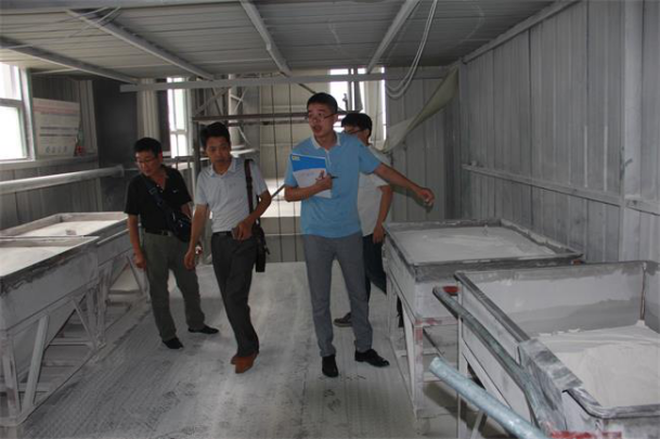 (上圖為工作組在縣開發(fā)區(qū)涉粉企業(yè)車間進行排查)