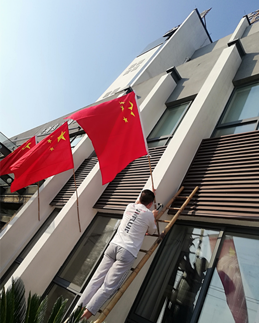 活動中,公司各部門按照職責分工,對公司大樓辦公公共區域的門窗玻璃、活動室、衛生間及各個衛生死角等進行全面清潔,加之國旗的安插和標語的懸掛,為國慶節的到來營造了隆重熱烈的節日氣氛。