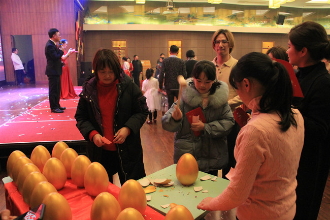 活動現場,中心準備了豐厚的禮品。主持人通過自主報名、擊鼓傳花等方式選取嘉賓參與互動節目,完成任務的即可得到砸金蛋的機會,把活動氣氛引向高潮。