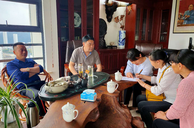 (上圖為走訪小組仔細(xì)聆聽昱聯(lián)爆破公司提出的意見和建議。)