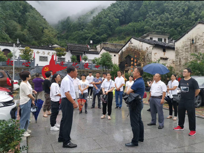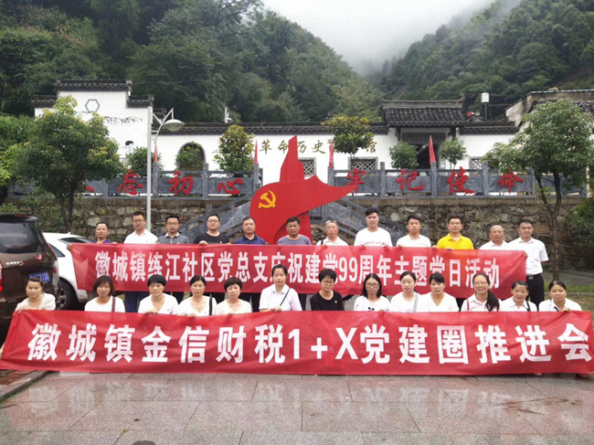 2020年7月3日,在中國共產(chǎn)黨成立99周年之際,我金信財稅黨支部1+X黨建圈與練江社區(qū)黨總支20余名黨員和建黨對象、積極分子等,冒雨走進歙縣上豐鄉(xiāng)巖源村革命老區(qū),聯(lián)合開展“走進紅色巖源 重溫革命歷史”主題黨日活動。