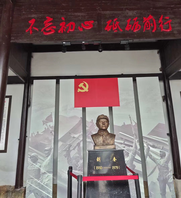 當(dāng)日,在巖源村,支部黨員與積極分子認(rèn)真聆聽鄉(xiāng)、村干部對革命年代艱苦歲月、浴血奮戰(zhàn)事跡的深情回憶和真實描述,并參觀巖源革命歷史陳列館,瞻仰新四軍游擊隊隊長劉奎雕像。