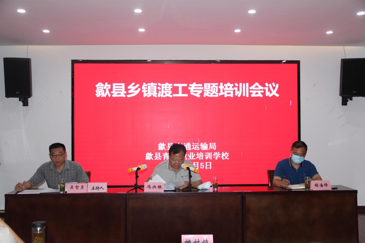 2021年8月5日,由歙縣交通運輸局主辦,歙縣青創職業培訓學校承辦的“歙縣鄉鎮渡工專題培訓會議”在我中心順利舉辦。縣內小川、坑口、新溪口、王村、徽城、雄村、武陽、深渡等8個鄉鎮政府分管領導及在鄉的17名渡工培訓對象參加培訓。歙縣交通運輸局副局長馮興根到會并作重要講話,青創學校負責人胡海鋒參加會議。