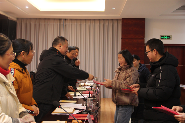 (上圖為中心領導為2021年度優秀班組、個人頒獎。)