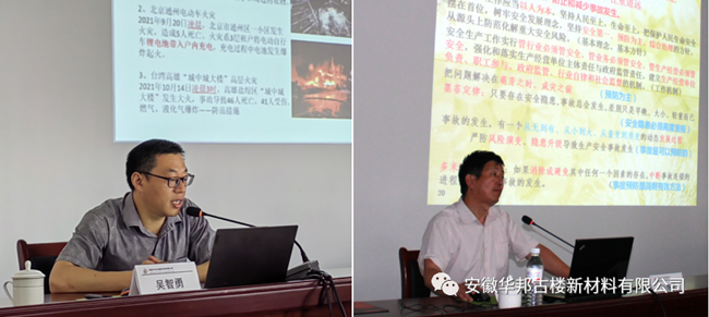 2022年6月是國家第21個安全生產月,今年的主題為“遵守安全生產法,當好第一責任人”。為進一步提高全員安全生產意識,全面落實安全生產責任,有效防范安全生產事故,我正億安全技術服務有限公司受安徽華邦古樓新材料有限公司委托,分別于6月17、18日,開展了兩場安全生產專題安全培訓活動,公司全體員工200余人參加了培訓。