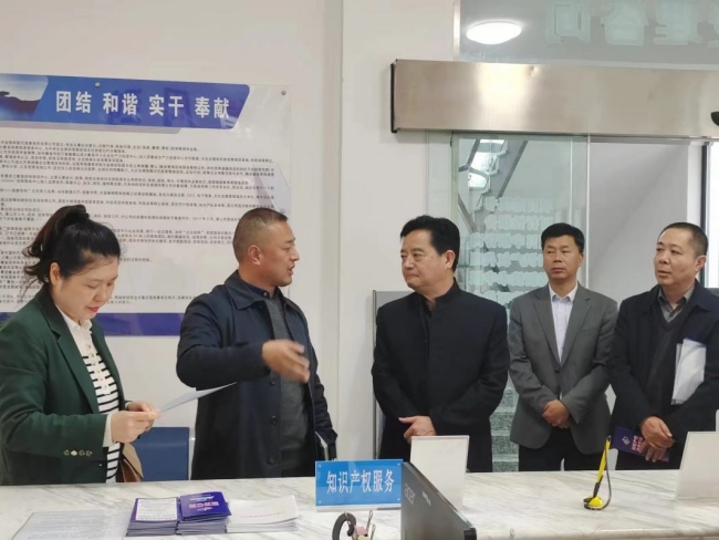 11月8日,安徽市場監督管理局知識產權公共服務處處長孫杰、省市場監管局四級調研員袁立新在黃山市市場監管局黨組成員、副局長張妮歙縣市場監督管理局局長江志偉等陪下到我中心就企業知識產權工作進行實地調研。