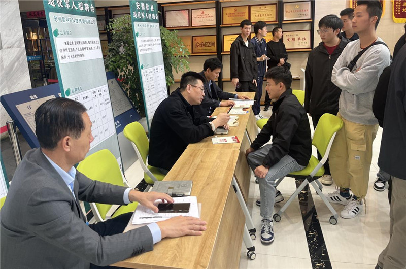 最后,組織參訓(xùn)學(xué)員參加由歙縣退役軍事務(wù)局與江蘇太倉(cāng)市退役軍人事務(wù)局聯(lián)合舉辦的“榮耀黃山”退役軍人專場(chǎng)招聘會(huì),實(shí)現(xiàn)退役軍人與兩地企業(yè)工作人員面對(duì)面溝通,了解市場(chǎng)用人需求,助力退役軍人做好精準(zhǔn)擇業(yè)和順利就業(yè)。