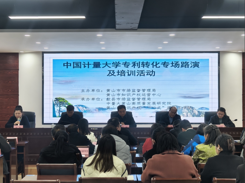 1129日,中國(guó)計(jì)量大學(xué)專利轉(zhuǎn)化專場(chǎng)路演及培訓(xùn)活動(dòng)在黃山市知識(shí)產(chǎn)權(quán)“一站式”服務(wù)工作站(安徽香寧眾創(chuàng)科技服務(wù)有限公司)舉辦。黃山市市場(chǎng)監(jiān)督管理局(知識(shí)產(chǎn)權(quán)局)黨組成員、副局長(zhǎng)黃劍,黃山市市場(chǎng)監(jiān)管局黨組成員、副局長(zhǎng)張妮,歙縣市場(chǎng)監(jiān)督管理局黨組書記、局長(zhǎng)江志偉以及全市知識(shí)產(chǎn)權(quán)行政管理人員和相關(guān)企業(yè)參加活動(dòng)。