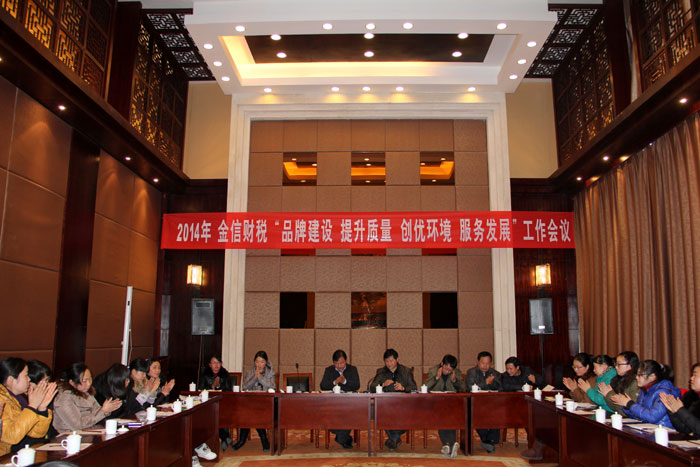 2014年是金信財(cái)稅的“品牌建設(shè)年”,為推進(jìn)、實(shí)施這項(xiàng)長(zhǎng)期、艱巨的工作目標(biāo),公司于2月15日在歙縣飯店一樓舉行了會(huì)議,會(huì)議除了公司的33名員工外,還特別邀請(qǐng)了經(jīng)信委的洪亮、汪錦峰副主任參加了會(huì)議。